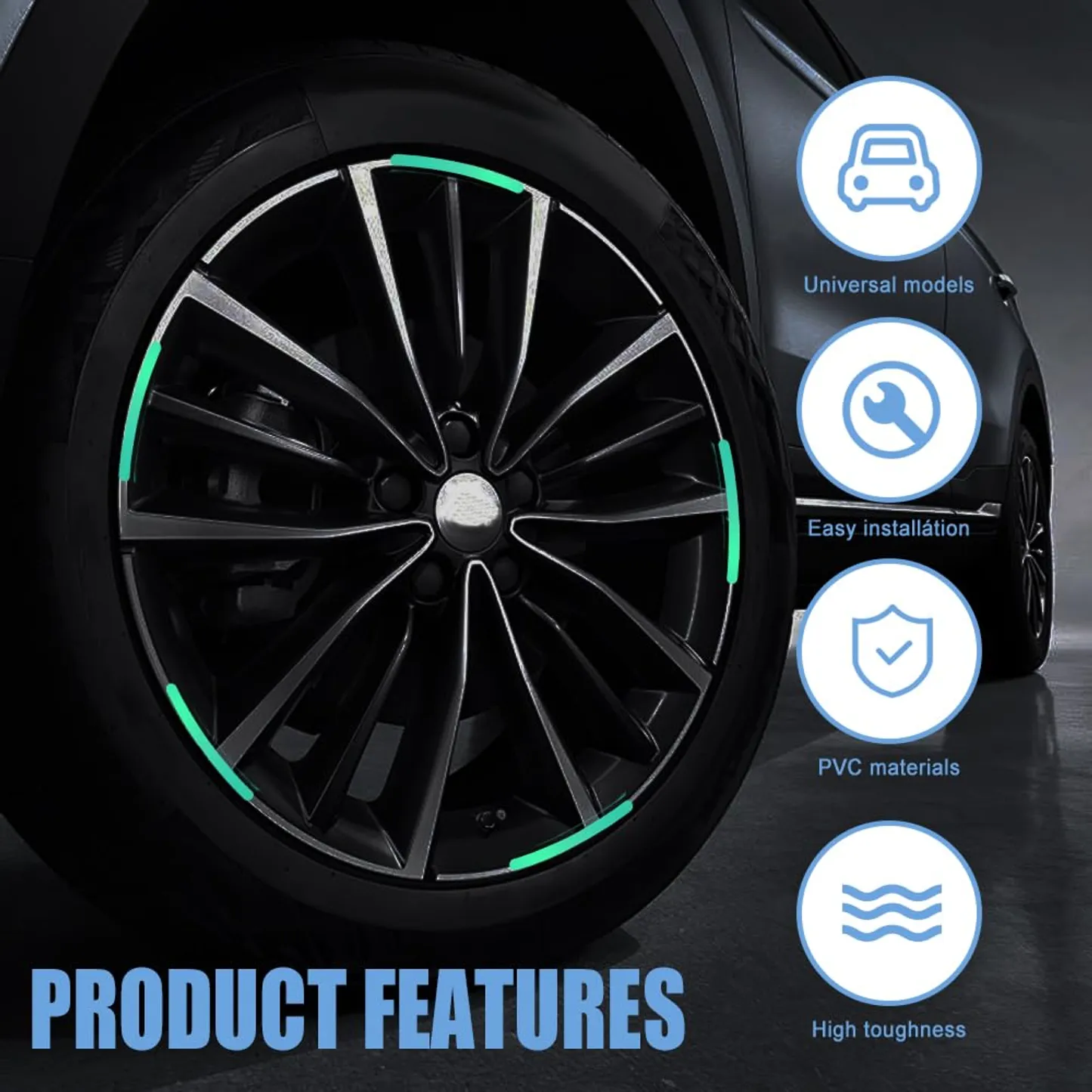 - [Cool decoration] : When these car wheel decals are exposed to strong light, it will have a wonderful reflection effect, and when the car is driving, they will form a luminous circle, full of personality, so that your vehicle stands out on the road