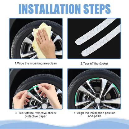 - [Safe driving] : This tire stickers for cars are a strong reflective material, can reflect the surrounding light source, can also be clearly seen at night, so as to remind other drivers to maintain a safe distance, effectively improve night driving safety