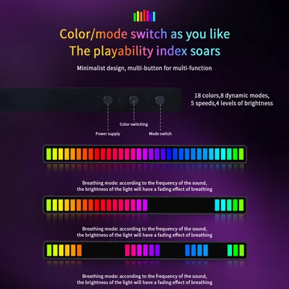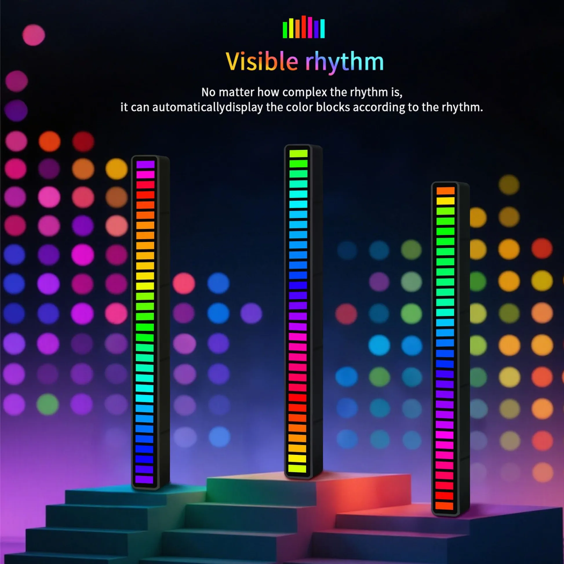 - Experience the thrill of RGB music-controlled rhythm lights! These atmospheric lights for vehicles and parties sync with sound intensity, creating a stunning visual display that enhances any setting. Enjoy an immersive light show tailored to your environment.