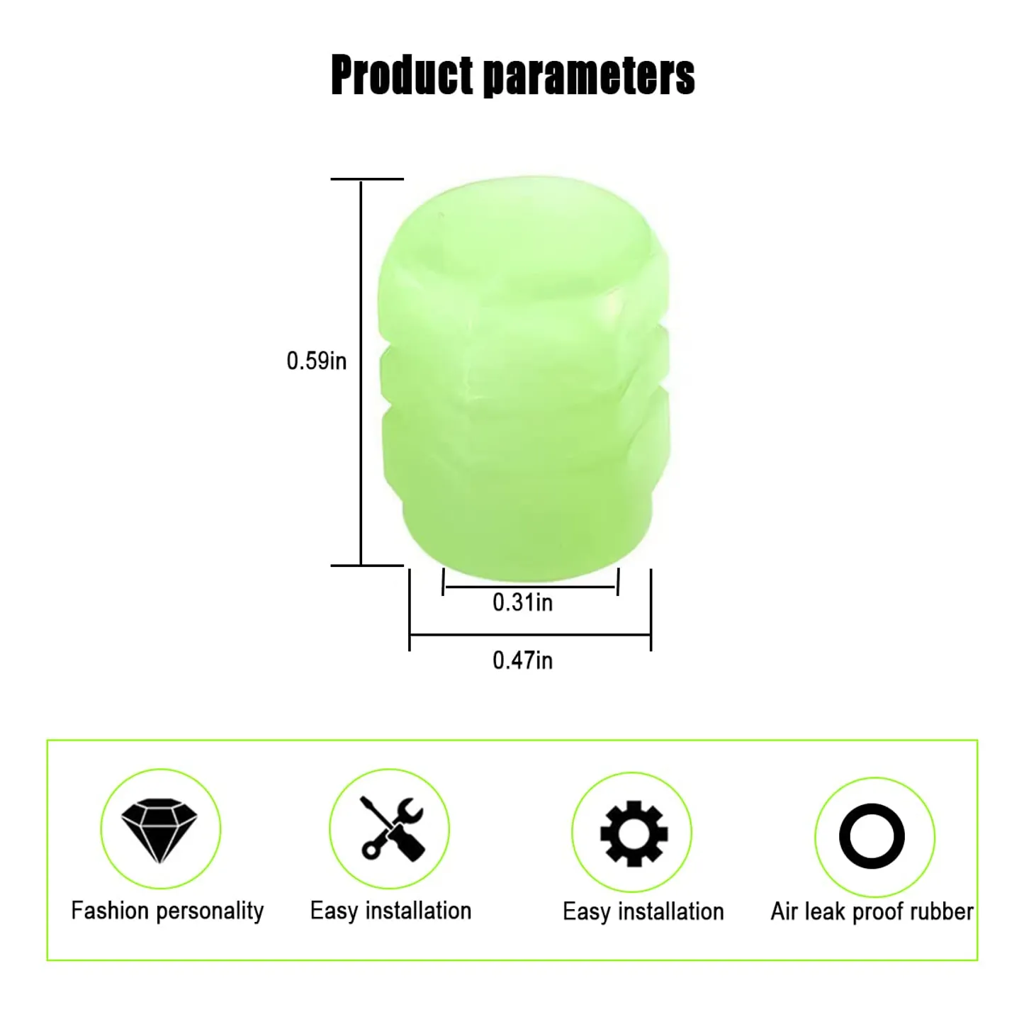 - 【Glow in Dark】: This tire valves stem caps are made of Luminous Material .Give your car a unique luxury look, with beautiful dazzling.