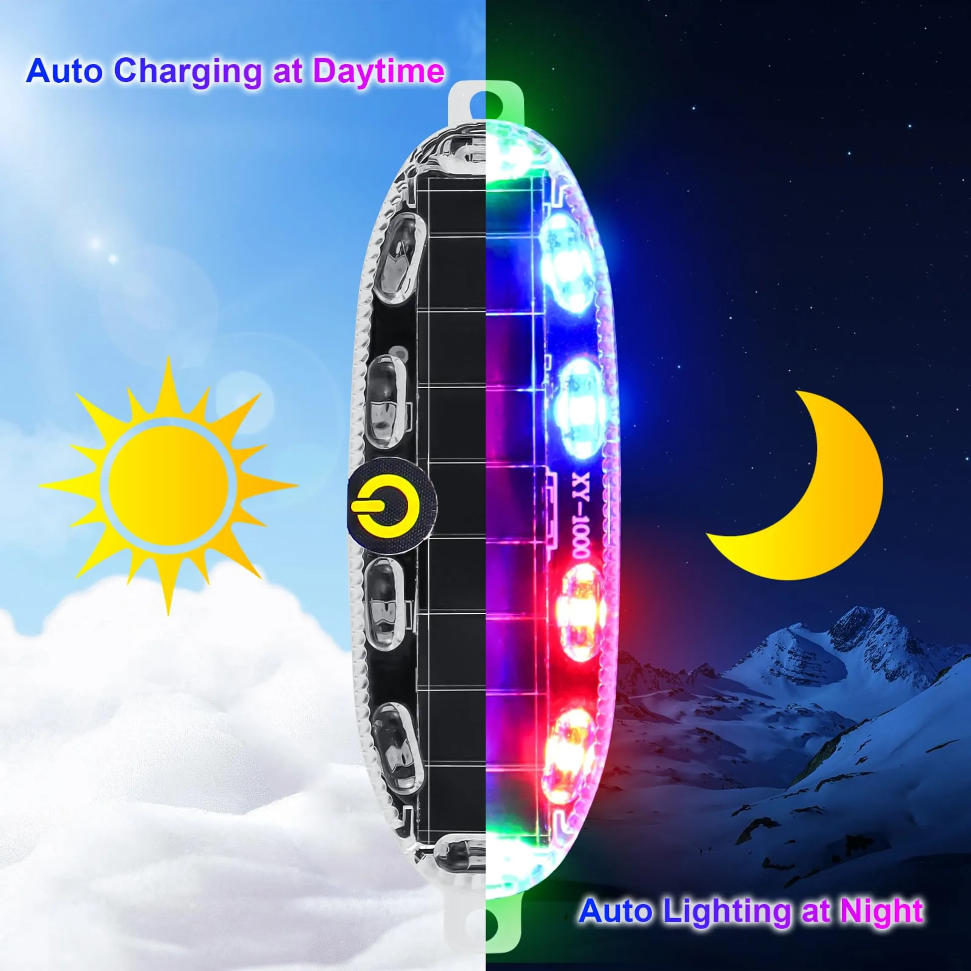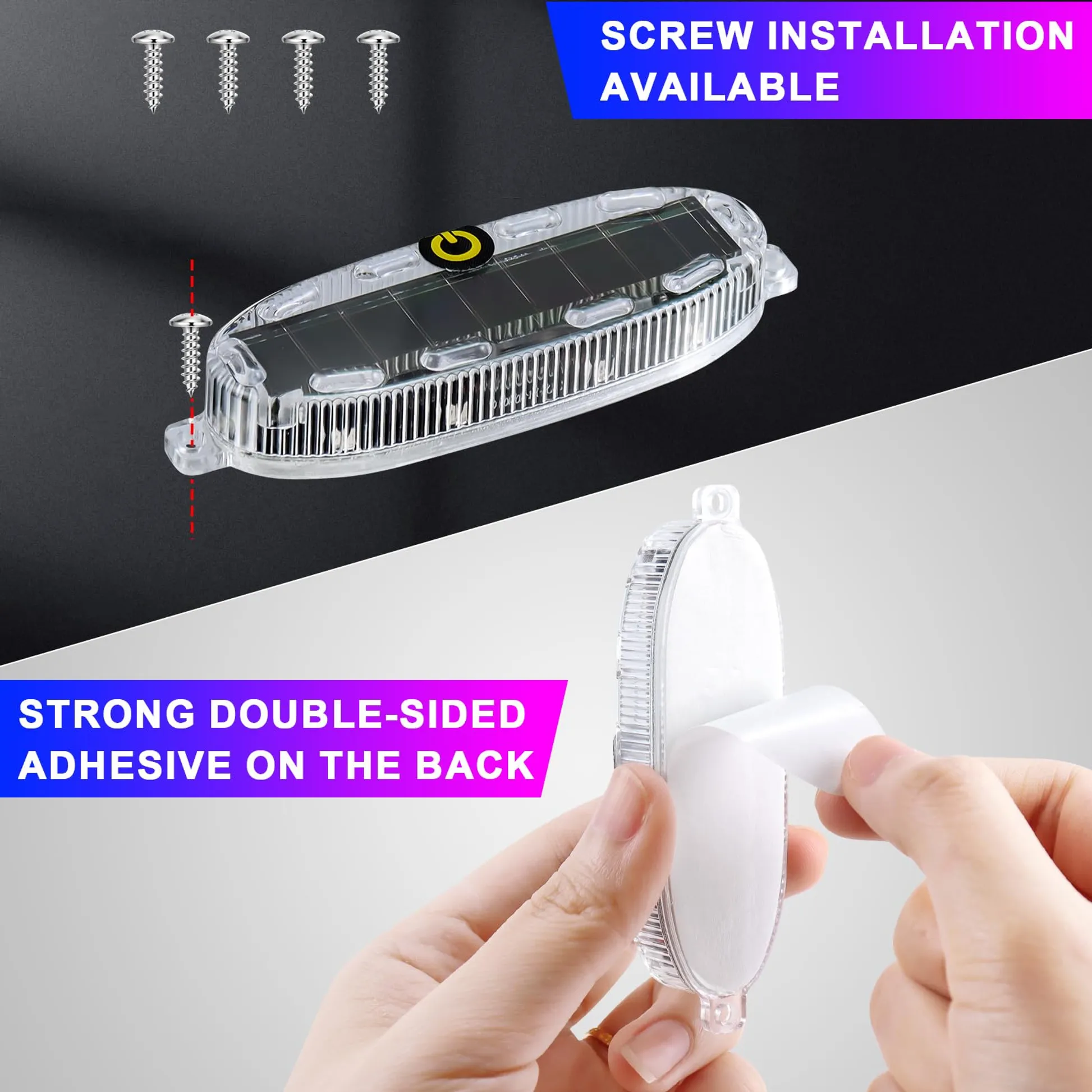 • Solar Powered Design: Our wireless LED strobe lights have built-in solar panels and batteries,charging automatically in sunlight.No need for external power supply or frequent battery replacement.More convenient and energy-saving.