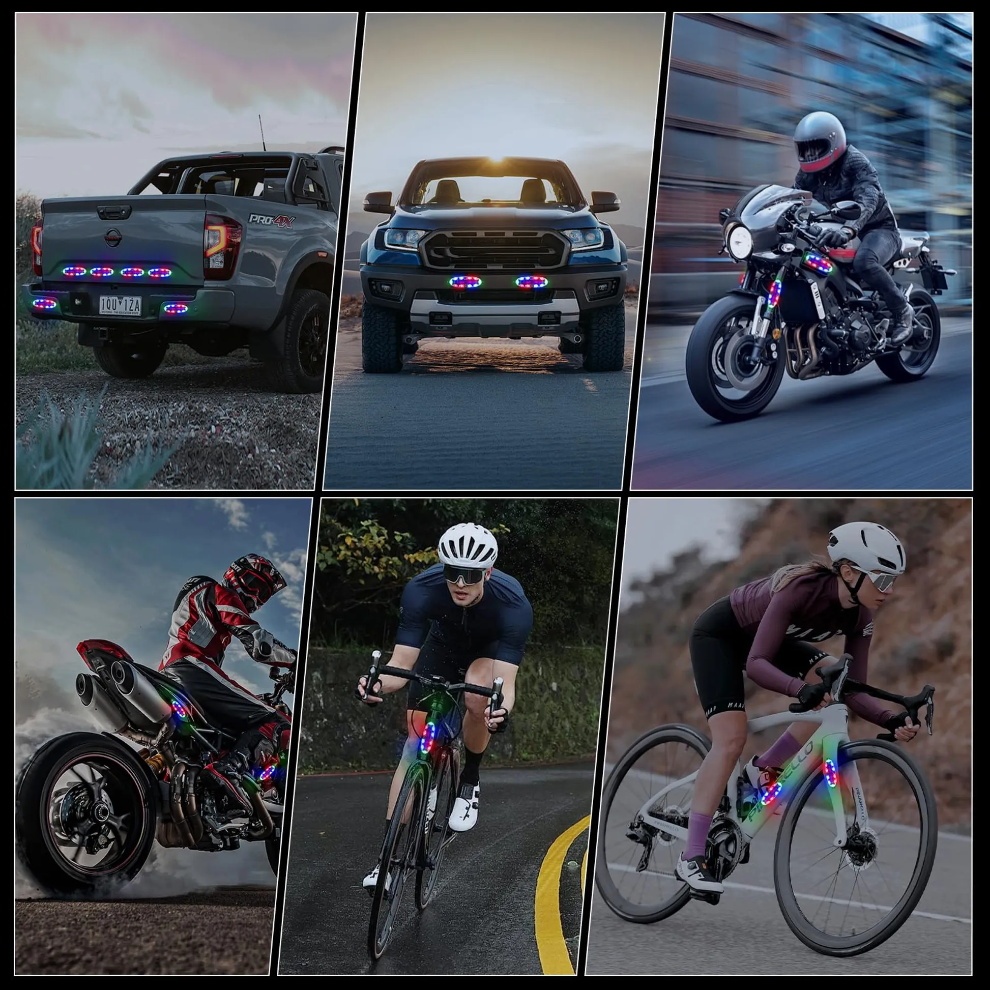 Wireless Solar Strobe Lights - Red, Blue, Green Emergency Warning and Anti-Collision Flashing Light for Car, Truck, Motorcycle, Bike - Ensure Night Safety Driving