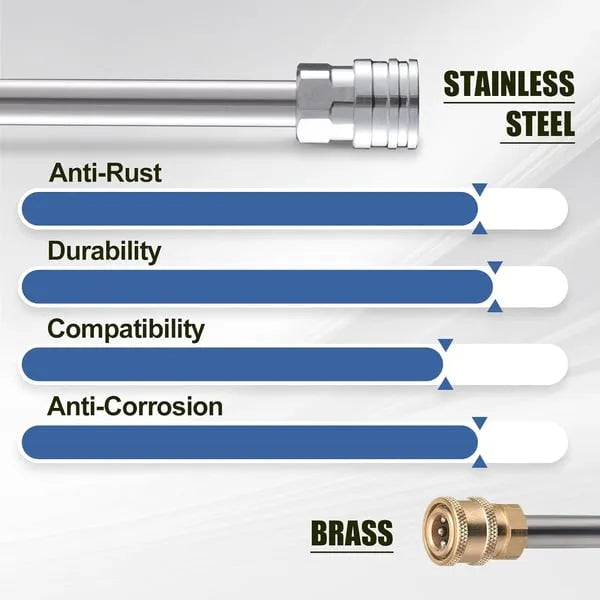 - 【Multi-option connector】: this versatile tool features a unique design with two different connector ends : a longer one for the pressure washer nozzle and a shorter one for the snow foam lance . This strategic arrangement ensures unobstructed water flow when using the nozzle, even with the foam dispenser attached.