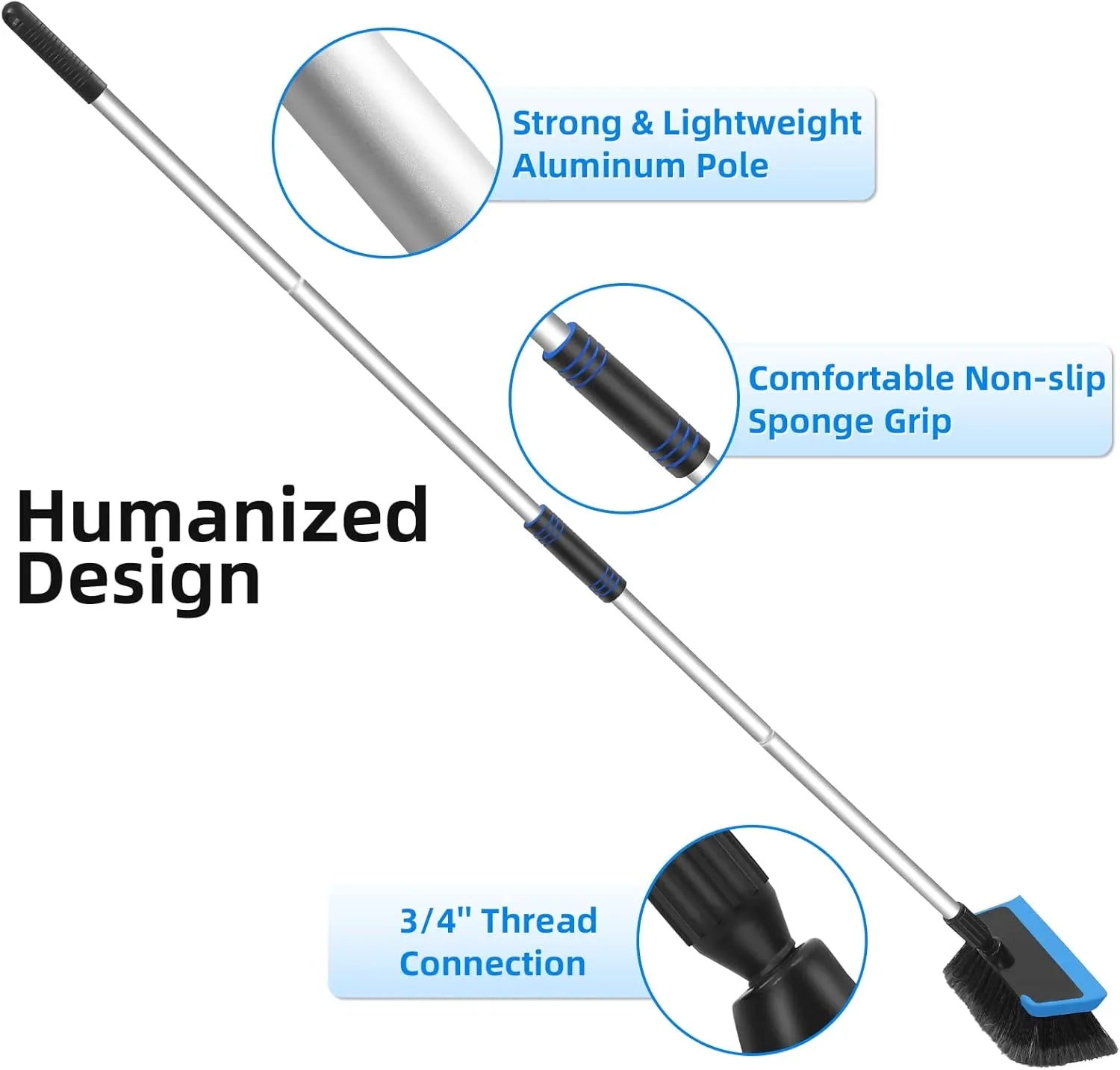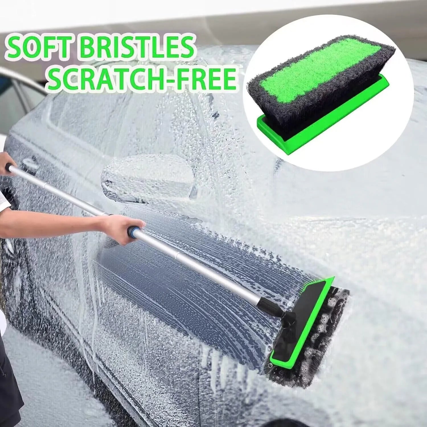 - 【62" EXTRA LONG STURDY CAR WASH BRUSH】- Car wash brush with high quality sturdy aluminum poles are not only lightweight, but also avoids stretching, bending or twisting, making it easy and efficient to clean your car. Long handle design allows easy cleaning of the car, RV, SUV, and truck roofs, and hard-to-reach areas. The non-slip easy-grip handle car wash mop will enable you to save more effort.