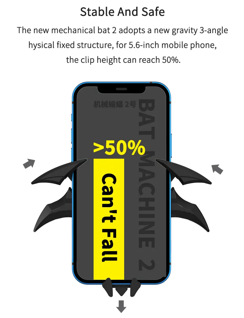 【Bat Wings Design】Experience the innovative bat-wing design of our car phone mount, engineered to provide optimal stability for your device while driving. Combining aesthetics with practicality, this unique design ensures your phone stays in place, allowing you to focus on the road ahead