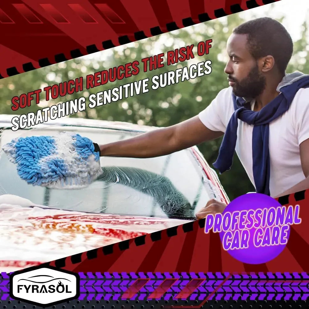 Chenille Microfiber Car Cleaning Mitts 2-Pack - Safely Clean Car Paint, Powerfully Remove Dirt