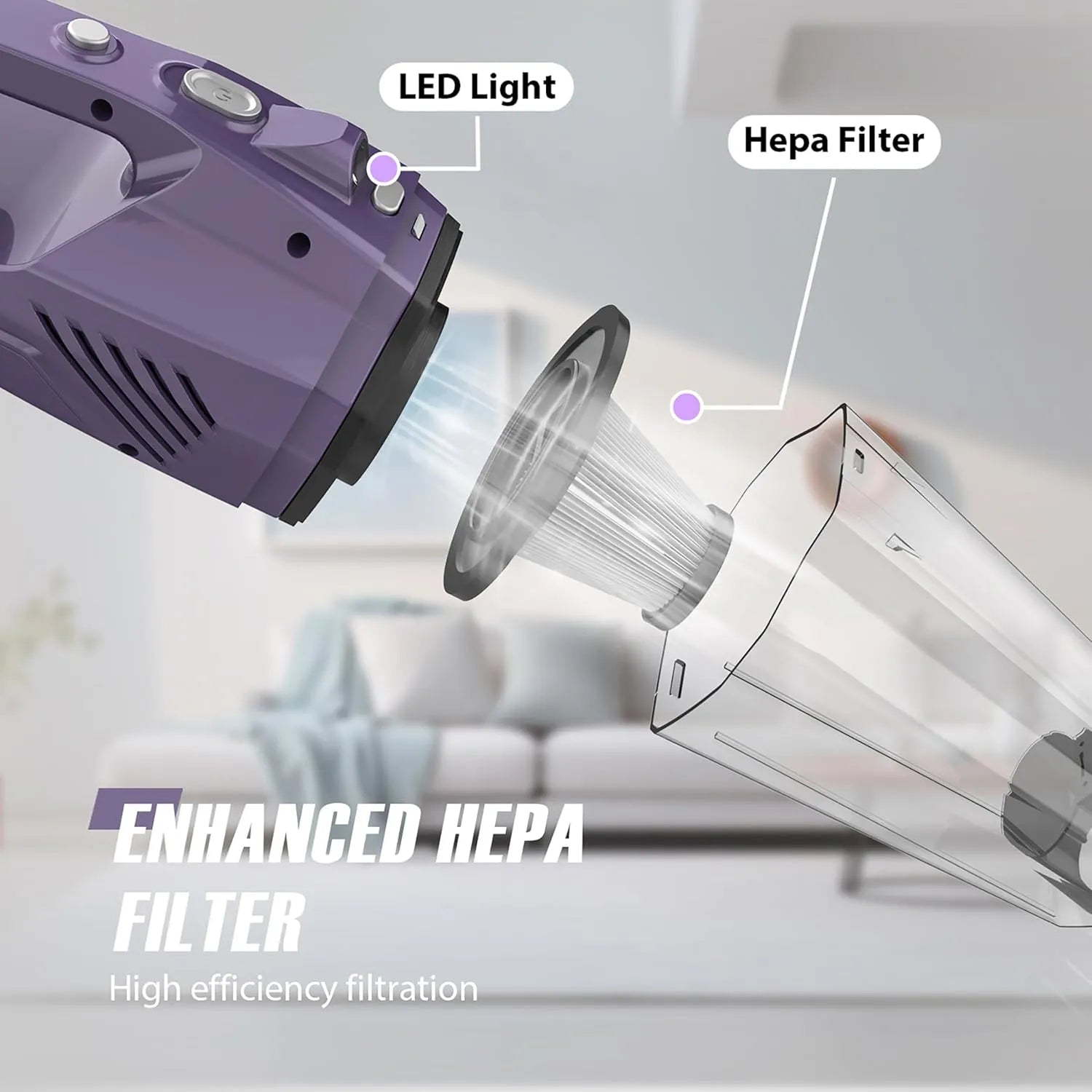 - ⭐【Washable Filter and Long Battery Life】This handheld vacuum cordless rechargeable can work for up to 20 minutes to help you with all aspects of cleaning. The Enhanced HEPA filter keeps suction strong while trapping 99.97% microdust. Tip: Please avoid liquid into the click, after cleaning the HEPA, please pay attention to drying before installation.
